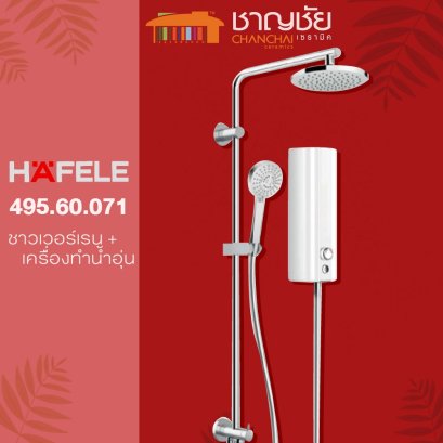 495.60.071 ชุดฝักบัวสายอ่อนพร้อมเครื่องทำน้ำอุ่น (Shower heater with shower column set ) อควอเบลล่า บาย เฮเฟเล่ คุณสมบัติ - ฝักบัวยืนอาบเส้นผ่าศูนย์กลาง 200 มม. พร้อมระบบเติมอากาศ - ฝักบัวสายอ่อนขนาดเส้นผ่าศูนย์กลาง 110 มม. พร้อมระบบเติมอากาศ - ฝักบัวสายอ่อน 3 ระดับ - อุปกรณ์เครื่องทำน้ำอุ่นประสิทธิภาพสูง 5.5 กิโลวัตต์ - สายฝักบัวยาว 1,500 มม. - ขอแขวนฝักบัวปรับระดับได้ อัตราการไหล: ฝักบัวก้านแข็ง 9.0 ลิตร/นาที ฝักบัวสายอ่อน 8.0 ลิตร/นาที ประหยัดพลังงานไฟฟ้าเบอร์ 5