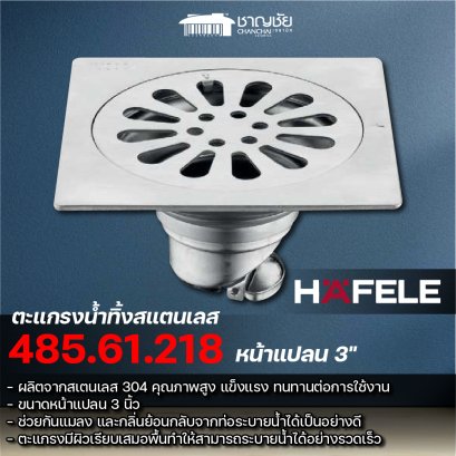 HAFELE 485.61.218 ตะแกรงน้ำทิ้งสแตนเลส หน้าแปลนขนาด 3" สีโครเมี่ยม แบรนด์ : HAFELE ความกว้าง : 18 เซนติเมตร ความยาว : 16 เซนติเมตร ความสูง : 4.5 เซนติเมตร สี : สีโครเมี่ยม หน่วยนับ : อัน คุณสมบัติเด่น ผลิตจากสแตนเลส เกรด304 คุณภาพสูง แข็งแรง ไม่เป็นสนิม ป้องกันกลิ่นและ แมลง หน้าแปลน 100X 100 มม ใช้กับขนาดท่อ 46 - 77 มม. การรับประกัน 1 ปี