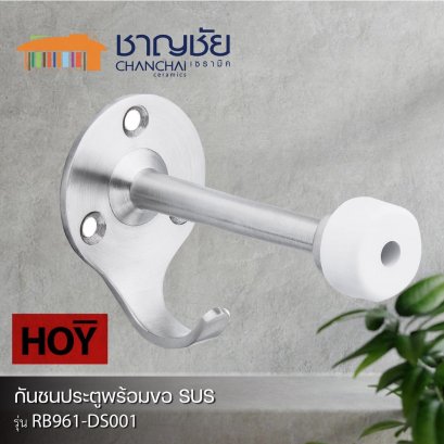 ### HOY รุ่น RB961-DS001 กันชนประตูพร้อมขอ SUS ### รายละเอียดสินค้า - ผลิตจากสเตนเลสแท้ 100% - แข็งแรง ทนทาน - สกรูสเตนเลส ไม่ผุกร่อน ไม่เป็นสนิม - ประกอบแน่น ไม่โยกคลอน ไร้เสียงรบกวน วิธีใช้ - ใช้ติดตั้งบนบานประตู การดูแลรักษา - หลีกเลี่ยงวัสดุที่อาจทำให้เเกิดรอยขีดข่วน เช่น วัสดุแข็ง แปรงลวด ไยขัด - สารเคมีทำความสะอาดห้องน้ำ ที่มีฤทธิ์เป็นกรด/ด่างสูง เช่น มีส่วนผสมของกรดไฮโดรคลอริค สามารถกัดกร่อนทำลายพื้นผิวของสเตนเลส ทำให้เกิดสนิมได้