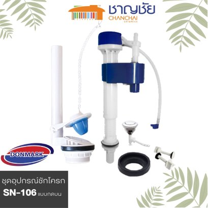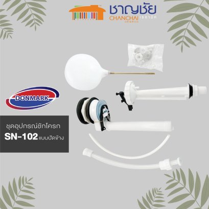DONMARK รุ่น SN-105 ชุดอุปกรณ์หม้อน้ำสุขภัณฑ์ ชุดอุปกรณ์ชักโครก อะไหล่ชักโครก ครบชุด แบบกดบน รายละเอียดสินค้า ห้องน้ำเป็นส่วนสำคัญในบ้านที่ทุกคนต้องใช้ทำกิจวัตรส่วนตัวอยู่เป็นประจำ จึงเป็นเรื่องสำคัญมากที่จะต้องเลือกสรรอุปกรณ์และเฟอร์นิเจอร์ที่มีคุณภาพ มีความแข็งแรงทนทาน หากว่าเฟอร์นิเจอร์ในห้องน้ำของคุณไม่มีมาตรฐานมากพอ ไม่สามารถทนต่อความชื้นได้ ก็อาจจะทำให้สุขอนามัยในห้องน้ำไม่ดีเท่าที่ควร หากคุณกำลังมองหาสุขภัณฑ์ที่ทำจากวัสดุที่ได้มาตรฐาน มีความแข็งแรง ทนทาน สามารถใช้งานได้นาน มีฟังก์ชันการใช้งานที่หลากหลายและครบครัน ทำให้การทำกิจวัตรประจำวันในห้องน้ำของคุณสะดวกสบายมากยิ่งขึ้น อีกทั้งยังทำให้คุณมั่นใจในสุขอนามัยได้แม้ต้องใช้งานร่วมกับผู้อื่น คุณสมบัติ - ประกอบด้วย แกนน้ำเข้า , แกนน้ำออก , แป้นกด ,น็อตยึด , ยางรองหม้อน้ำ - เกลียว 1/2"x1/2" ปุ่มเล็กใช้น้ำ 3 ลิตร เช่น ปัสสาวะ ปุ่มใหญ่ ใช้น้ำ 6 ลิตร เช่น ถ่ายหนัก - ความสูงลูกลอยแกนน้ำออก 27 cm - ความสูงลูกลอยแกนน้ำเข้า 24 cm เป็นชักโครกที่ประหยัดน้ำ - ด้วยระบบฟลัชน้ำที่มีประสิทธิภาพ กดครั้งเดียวชำระล้างสะอาดหมดจด สามารถใช้งานได้กับชักโครกแบบ 2 ชิ้นทั่วไป(คือรุ่นชักโครกที่มีถังพักน้ำแยกออกจากตัวชักโครก สามารถถอดถังออกได้ จึงเรียกว่าสุขภัณฑ์แบบ 2 ชิ้น ) ขนาด กว้าง16 x ยาว8.5 x สูง34 cm