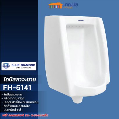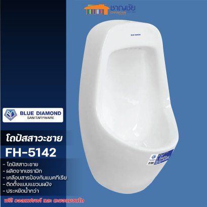 Blue diamond - FH5142 โถปัสสาวะชาย แขวนผนัง ขนาดกลาง วัสดุเซรามิก เคลือบสารป้องกันแบคทีเรีย โถปัสสาวะชาย แขวนผนัง ขนาดกลาง จุดเด่น 1. ผลิตจากวัสดุเซรามิก เนื้อผิวมันเงา เคลือบสารป้องกันแบคทีเรีย 2. ช่วยประหยัดน้ำ ลดการใช้น้ำในปริมาณมากเมื่อเทียบกับการกดชักโครก 3. ใช้งานสะดวกกว่าสุขภัณฑ์ทั่วไป สำหรับคุณผู้ชาย 4. ติดตั้งแบบแขวนผนัง ช่วยประหยัดพื้นที่ + ฟรีวอลแฟรงค์ + ฟรีตะขอแขวนโถ 5. รูปทรงทันสมัยดีไซน์สวยงาม ทันสมัย เหมาะสำหรับทุกห้องน้ำ